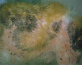 | 皮膚のの化膿性病変を総称して膿皮症とよぶ。軽症なものでは自然に治るが、感染抵抗性の弱い犬や、治療法が不適切だった場合炎症が悪化し慢性化しやすい。 | |